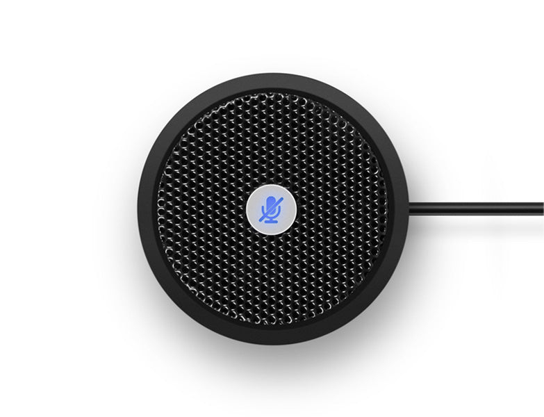 Simply press the button on top of the unit to mute (red light) and unmute (blue light) the microphone.