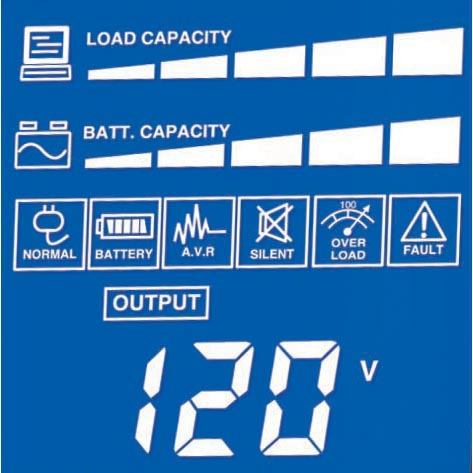 - Intelligent LCD Diagnostic Display: The innovative front panel LCD can be used to display detailed information on the status of your UPS and current power conditions. The LCD displays 11 different diagnostics: Input voltage level, Output voltage level, Automatic voltage regulator, Battery capacity, Runtime estimate, Load level, Output frequency, On battery, Overload, Fault Condition, and Silent mode;