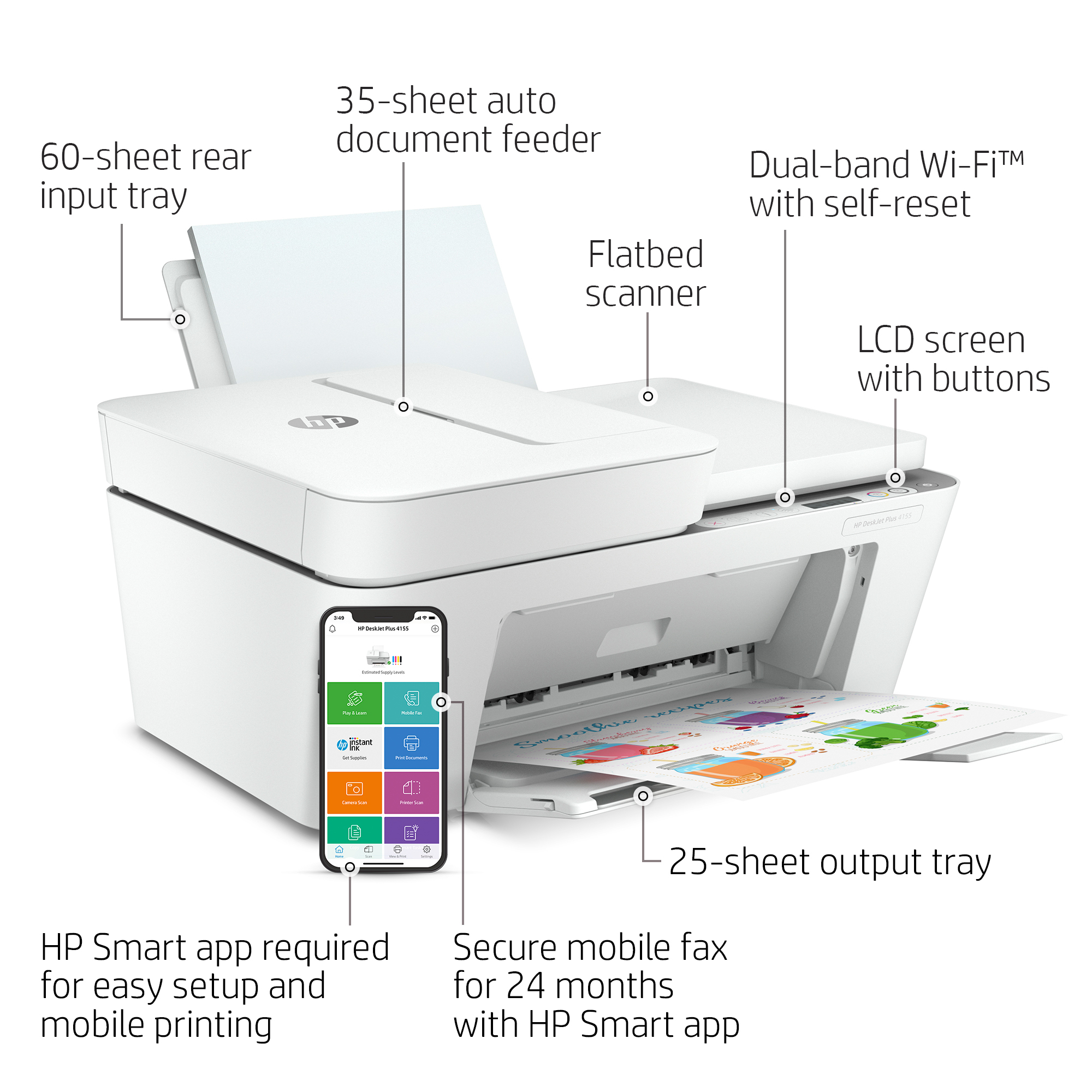 HP DeskJet Plus 4155 Wireless All-in-One Color Printer, Instant Ink; Copier, Scanner