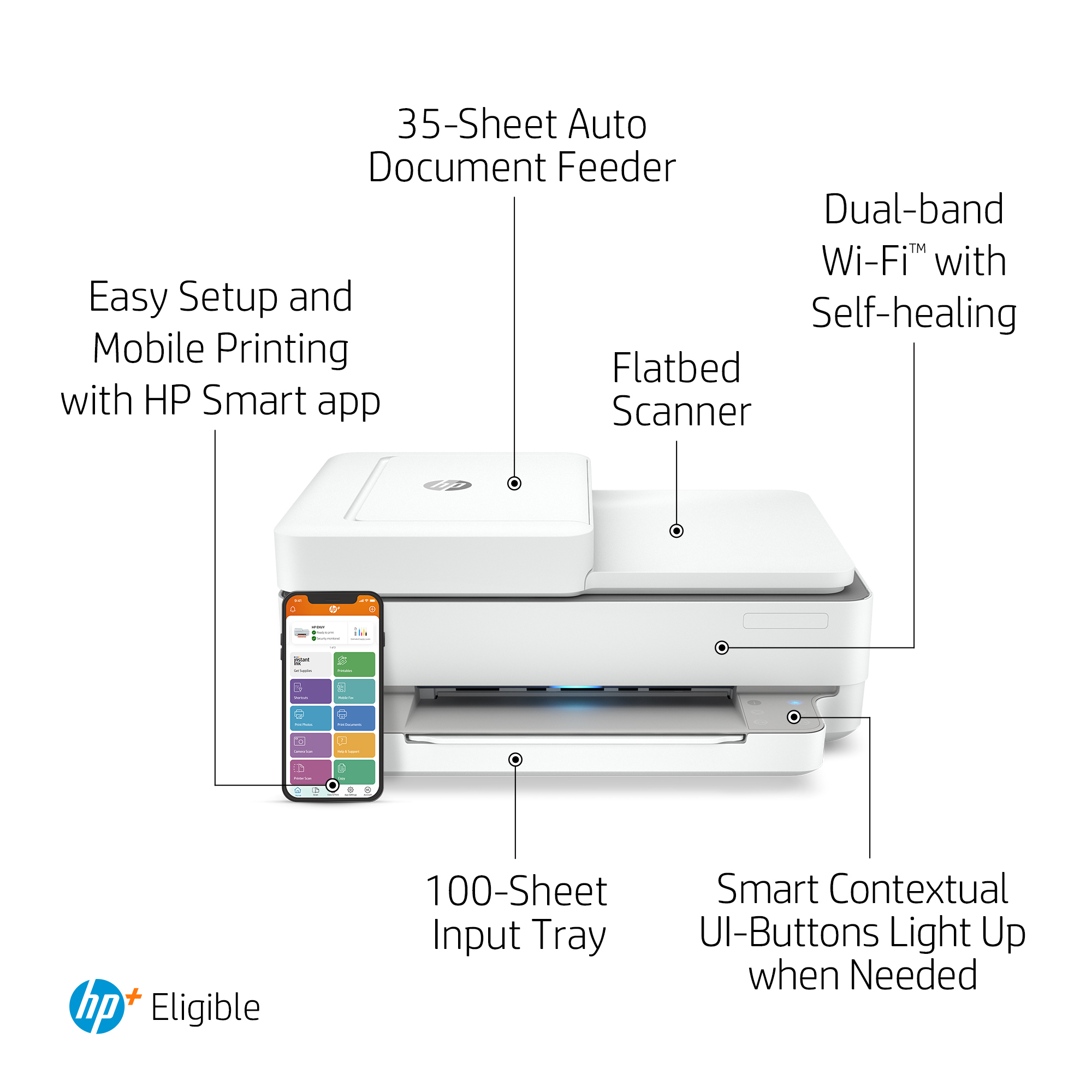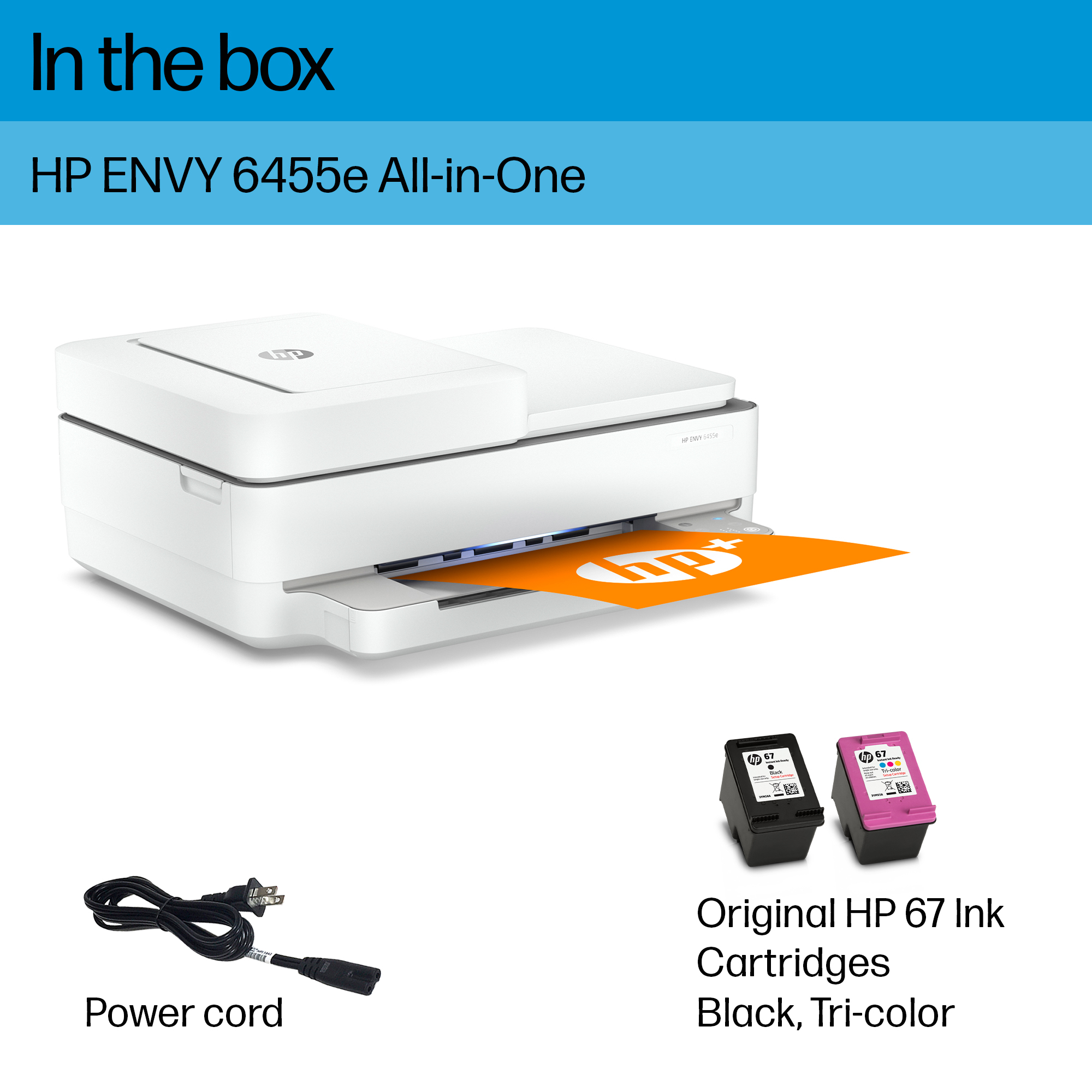 HP ENVY 6455e All-in-One Printer, Color Printer for Home, Print, copy, scan, send mobile fax, Instant Ink eligible; Print from phone or tablet; Two-sided printing; Scan to email