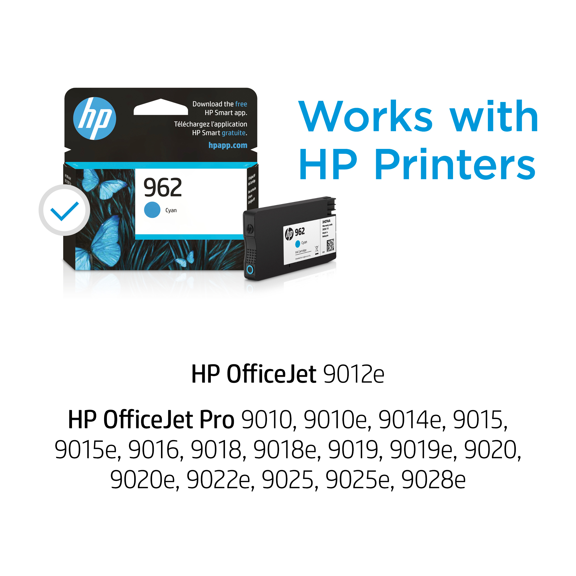 HP 962 Cyan Original Ink Cartridge. Colour ink type: Pigment-based ink, Cartridge capacity: Standard Yield, Color ink page yield: 700 pages, Color ink volume: 10.74 ml, Printing colors: Cyan, Quantity per pack: 1 pc(s)