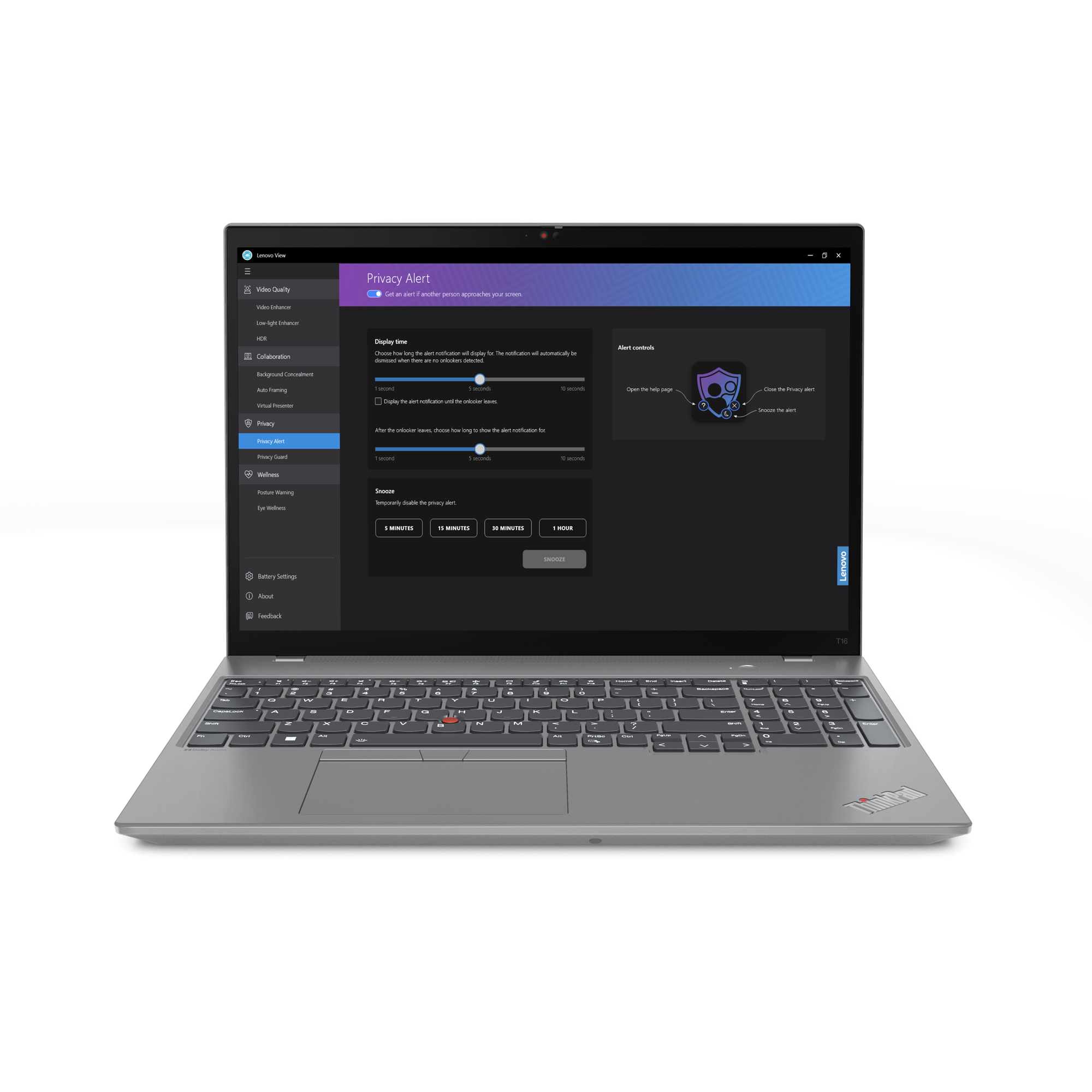 Biometrics provide extra protection on the ThinkPad T16 Gen 2 laptop—from the fingerprint reader integrated with the power button to the facial recognition software that works with the IR camera. ThinkShield, our comprehensive suite of security solutions, is integral to our laptops. Features like discrete Trusted Platform Module (dTPM) encrypt your data. Human-presence detection works with the infrared camera to automatically lock your device when you move away. And Intel vPro® helps prevent attacks to the OS, login credentials, and more.