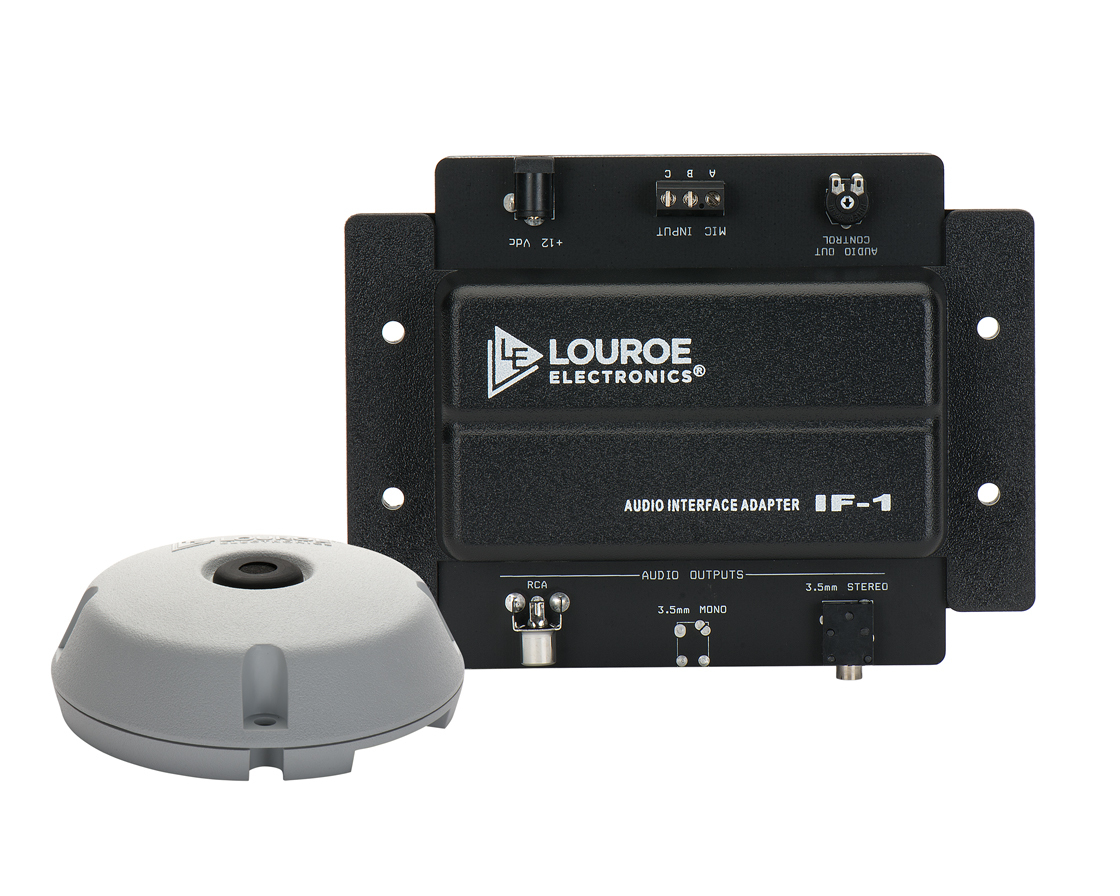 IF-1 Audio Interface Adapter (RCA, 3.5 mm, 18k ohms (input), 600W @ 1kHz (out), 12 VDC, 155.9 g) + Verifact A Microphone (Electret Condenser, 50 - 15 KHz, 10 mA, 12V, 99.2 g)