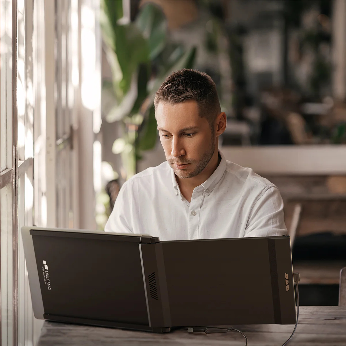 Duex Max DS is our most upgraded, portable dual-screen laptop accessory that makes multitasking effortless. To give laptop users a more perfect laptop dual screen user experience, this portable laptop monitor is 14.1" large screen, 0.25" at thinnest point , only 1.8lb lightweight for true mobility, and make you work faster while improving the quality of your work.