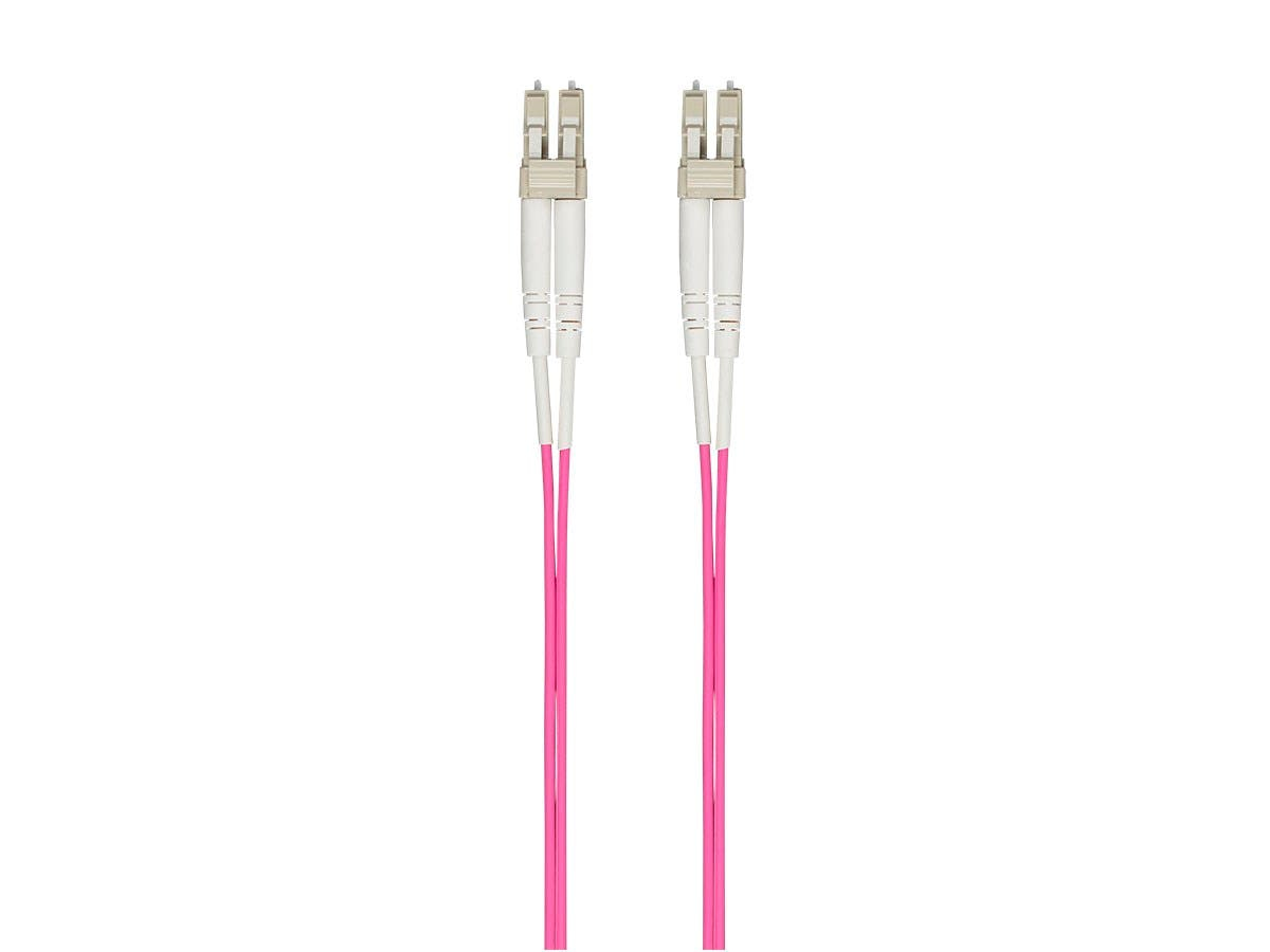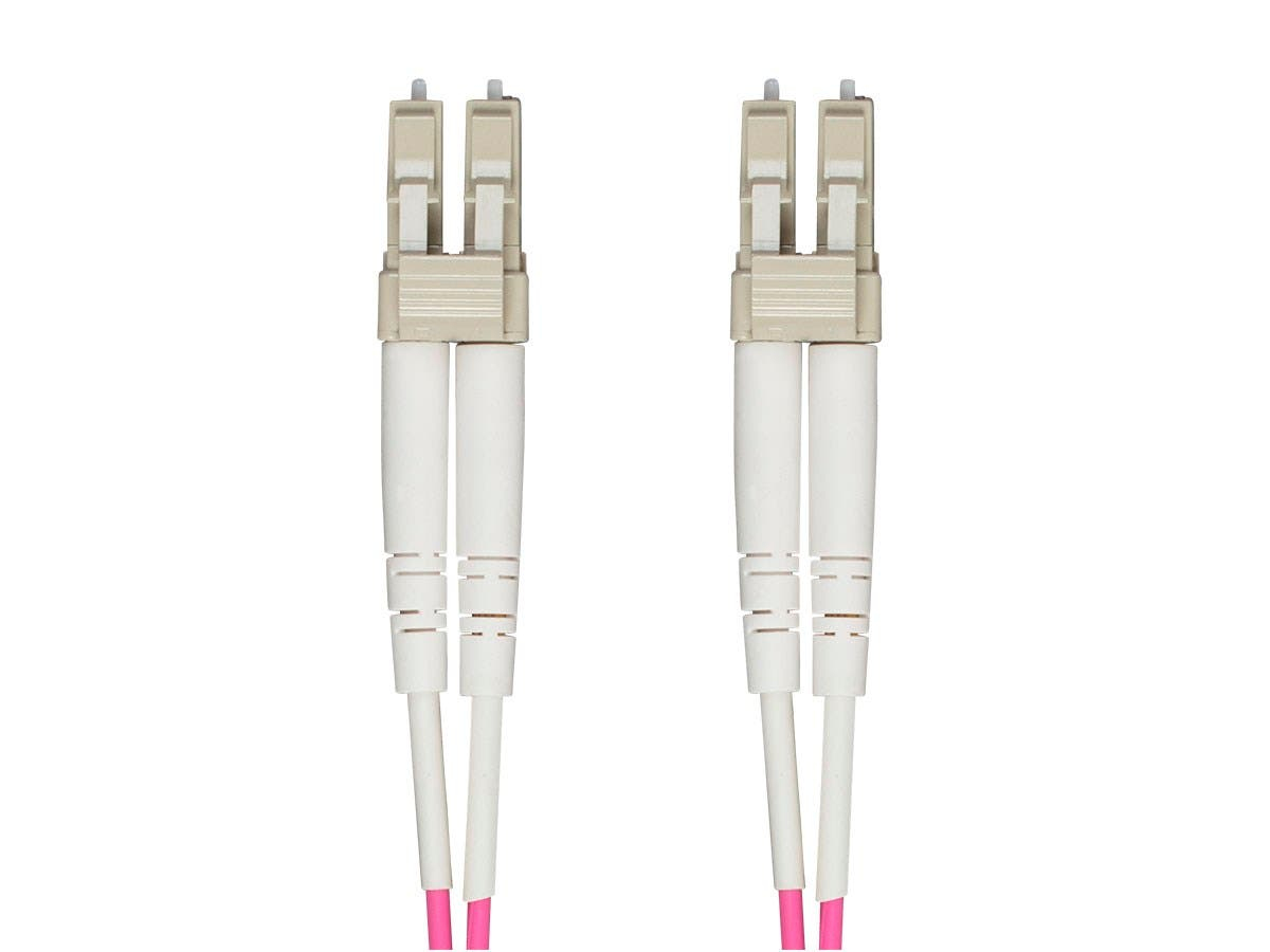 This is an OM4 "Purple" laser-optimized, multi-mode cable with a 50µm core and 125µm cladding diameter. The cable has a color-coded Dual LC connector on each end and is ideal for use in 10 Gigabit Ethernet (GbE) networks.