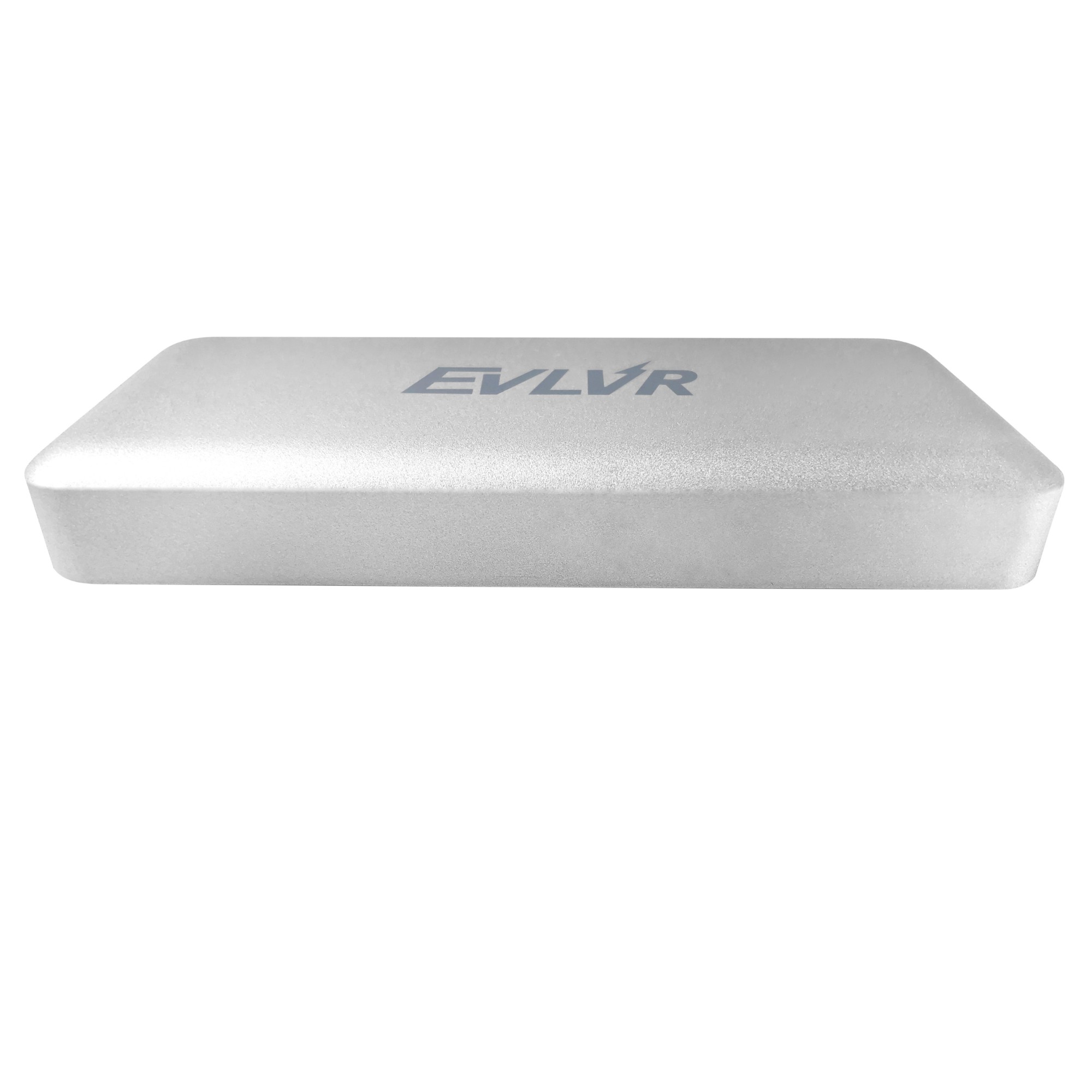 Housed in a sleek, silver chassis with the EVLVR logo etched on top, it's small and compact enough to take with you everywhere you go. The EVLVR is built with the highest quality materials and with convenience in mind.