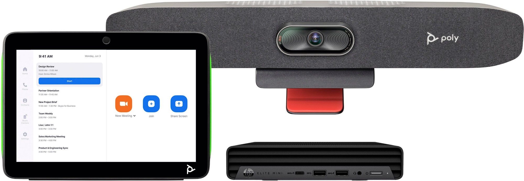 HP Poly Poly Studio Small Room Bundle for Zoom Rooms: Studio R30 USB Video Bar and HP PC w/TC10 TAA