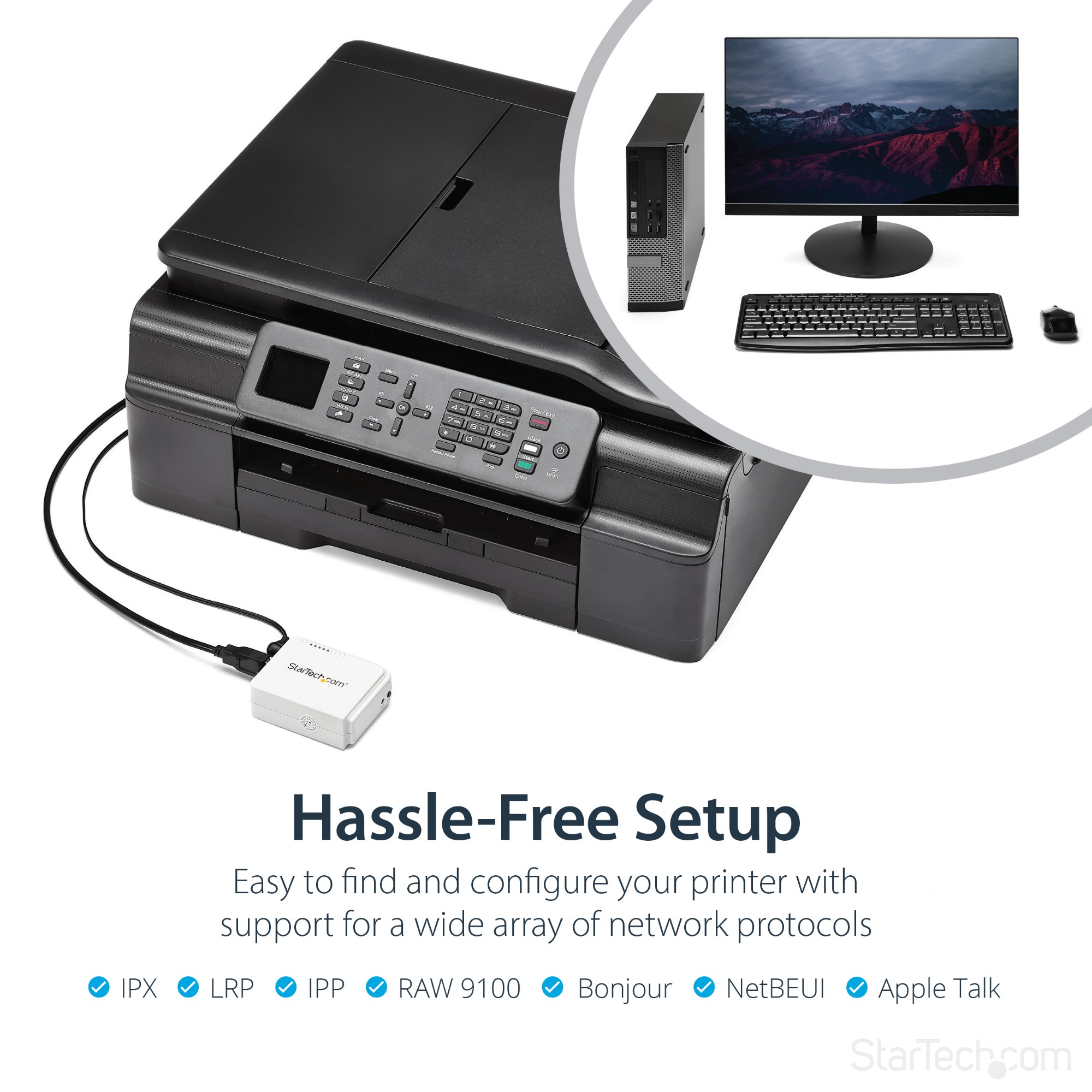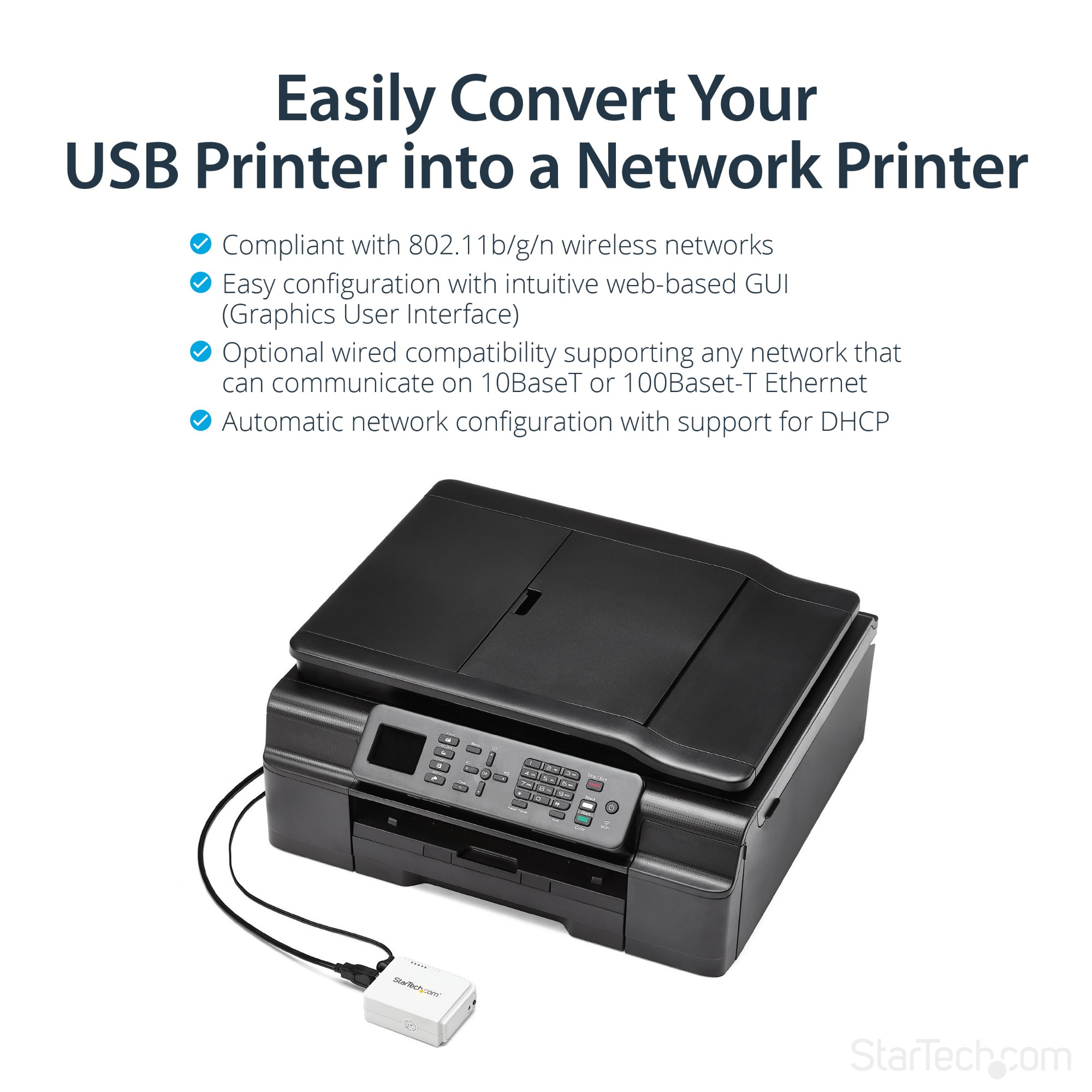 StarTech.com 1-Port Wireless N USB 2.0 Network Print Server - 10/100 Mbps Ethernet USB Printer Server Adapter - Windows 10 - 802.11 b/g/n (PM1115UW)