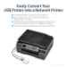 Share a standard USB printer with multiple users simultaneously over a wireless network