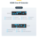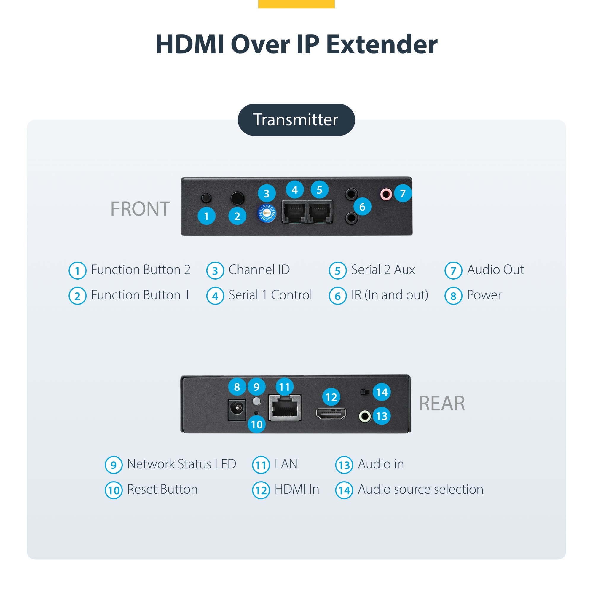 This HDMI over IP extender kit distributes video to a remote location, over your local area network (LAN) and Cat5e or Cat6 Ethernet cabling. By combining this kit with additional receivers (sold separately) and an Ethernet switch (sold separately) you can distribute an HDMI source to multiple locations and create video walls using several remote displays and receivers in the same location.