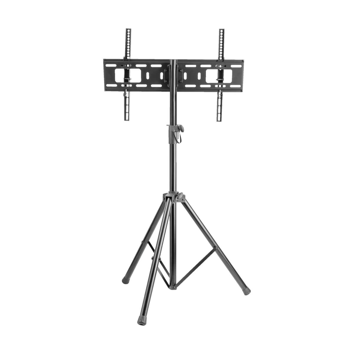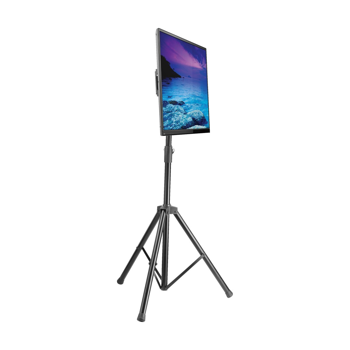 This portable TV stand fits most flat-panel displays, whiteboards and monitors from 37 to 70 inches (100 to 178 centimeters). It assembles easily to allow convenient setup wherever foot traffic flows, such as classrooms, trade shows, lecture halls, offices, auditoriums, restaurants, bars and hotels. The tripod-style stand adjusts to five different heights, and the display tilts for comfortable custom viewing.