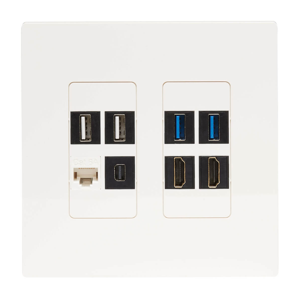 Double-Gang Universal Keystone Wall Plate Connects up to 8 Cables