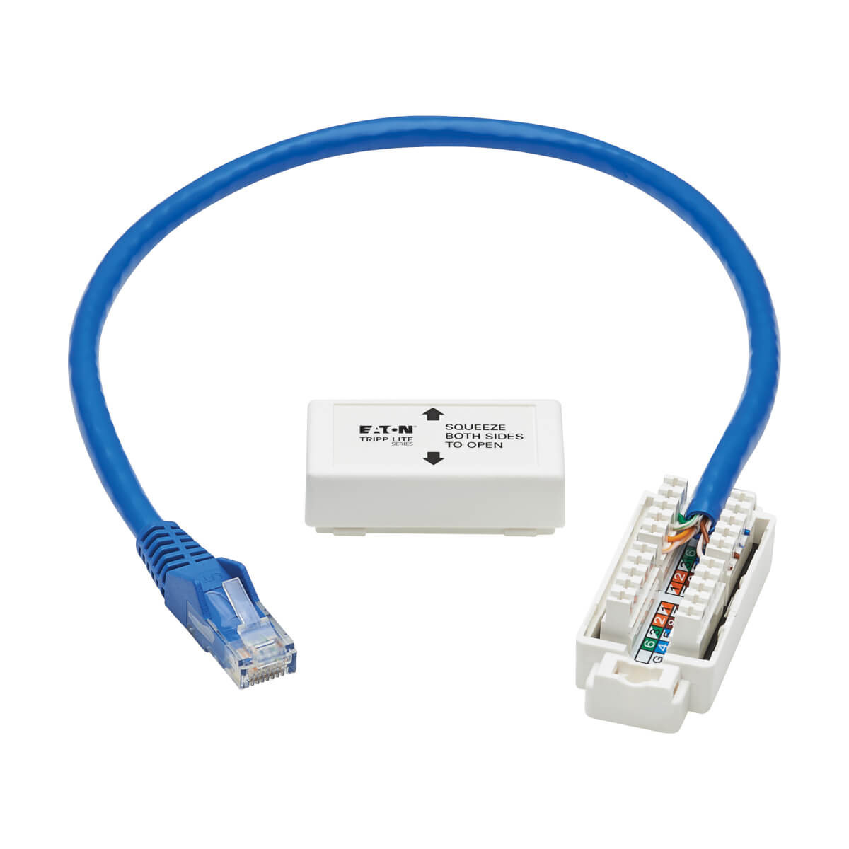 This Cat6a keystone jack assembly is recommended for above-ceiling applications where the use of wall plates is impractical or otherwise not ideal. The 18-inch cable connects your Cat6 premise wiring to an IP camera, wireless access point (WAP), LED lighting scheme, sound equipment or other PoE+ device installed high on a wall, ceiling or any other location far from a convenient power outlet.