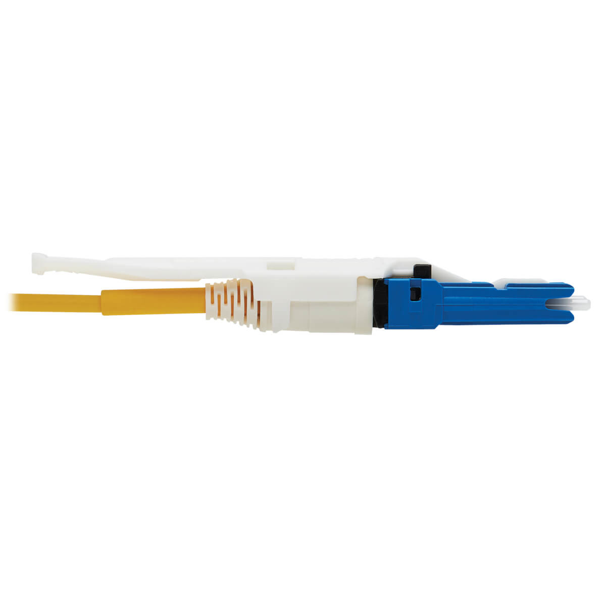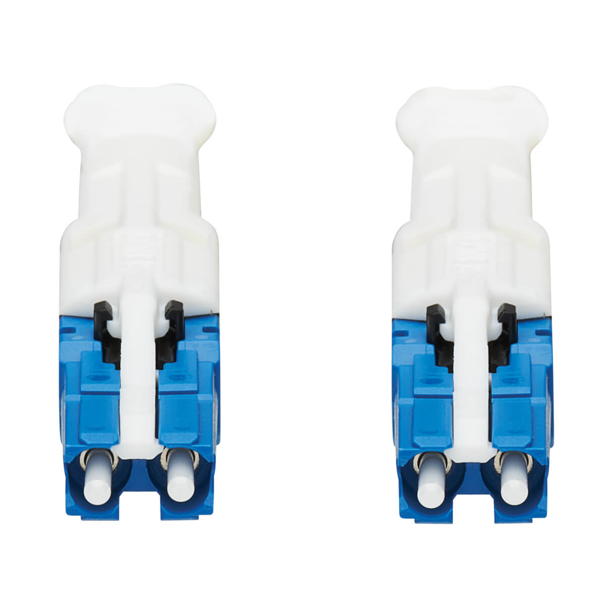 The CS ends are 40 percent smaller than standard LC connectors, making them compatible with the latest 400G QSFP-DD transceivers and an excellent solution for high-density network applications. Push/pull tabs allow dense vertical stacking in switches or patch panels where space is at a premium and make the cable easy to install or remove with one hand.