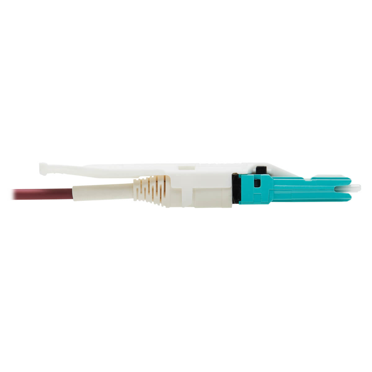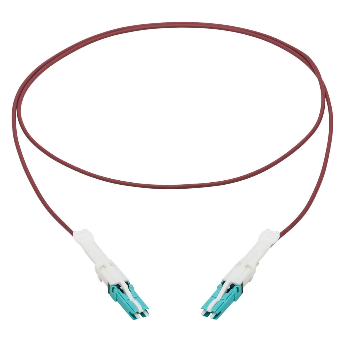 The OM4-rated cable has a magenta jacket, which is easy to identify quickly in a crowded patch panel or switch and helps prevent the cable from becoming accidentally disconnected. The round low-smoke zero-halogen (LSZH) jacket limits the amount of toxic smoke emitted in case of combustion, making it suitable for poorly ventilated areas.