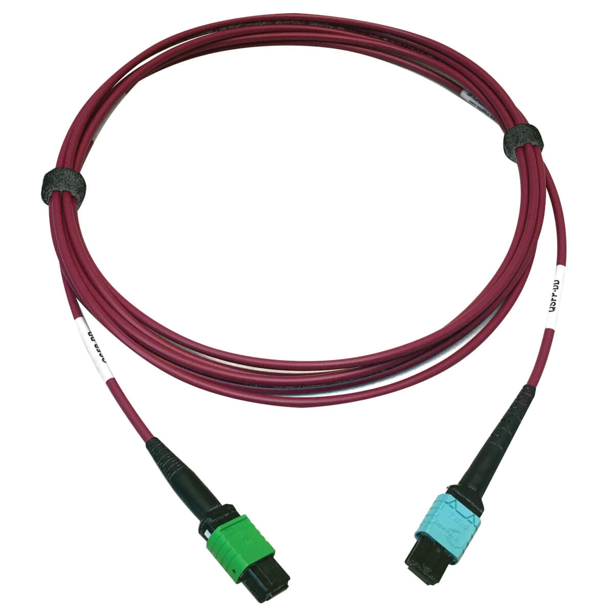 400G Multimode 50/125 OM4 Plenum Fiber Optic Cable, 16F MTP/MPO-APC to 24F MTP/MPO-UPC (F/F), Magenta, 3 m