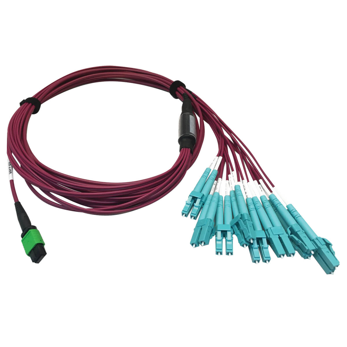 As the amount of traffic in data networks grows, so does the need for next-generation devices and fiber cables to support much higher bandwidths in cloud services, hyperscale data centers, telecom applications and equipment OEM companies. This multimode 50/125 OM4 breakout cable is an ideal choice for 400G Ethernet applications up to 100 meters (at 850 nm). It has documented insertion loss and back reflection testing on every connector and attenuation loss that meets or exceeds current standards.