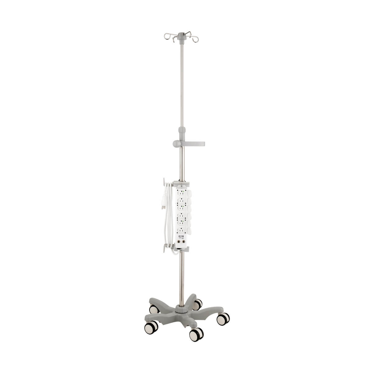 Supplies power to movable plug-connected components mounted to IV poles, mobile carts, crash carts and mobile medical workstations in operating rooms and patient-care vicinities.