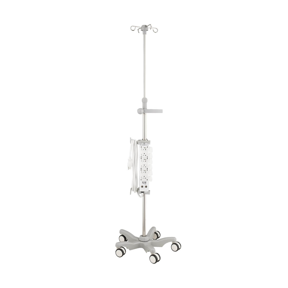 Supplies power to movable plug-connected components mounted to IV poles, mobile carts, crash carts and mobile medical workstations in operating rooms and patient-care areas.