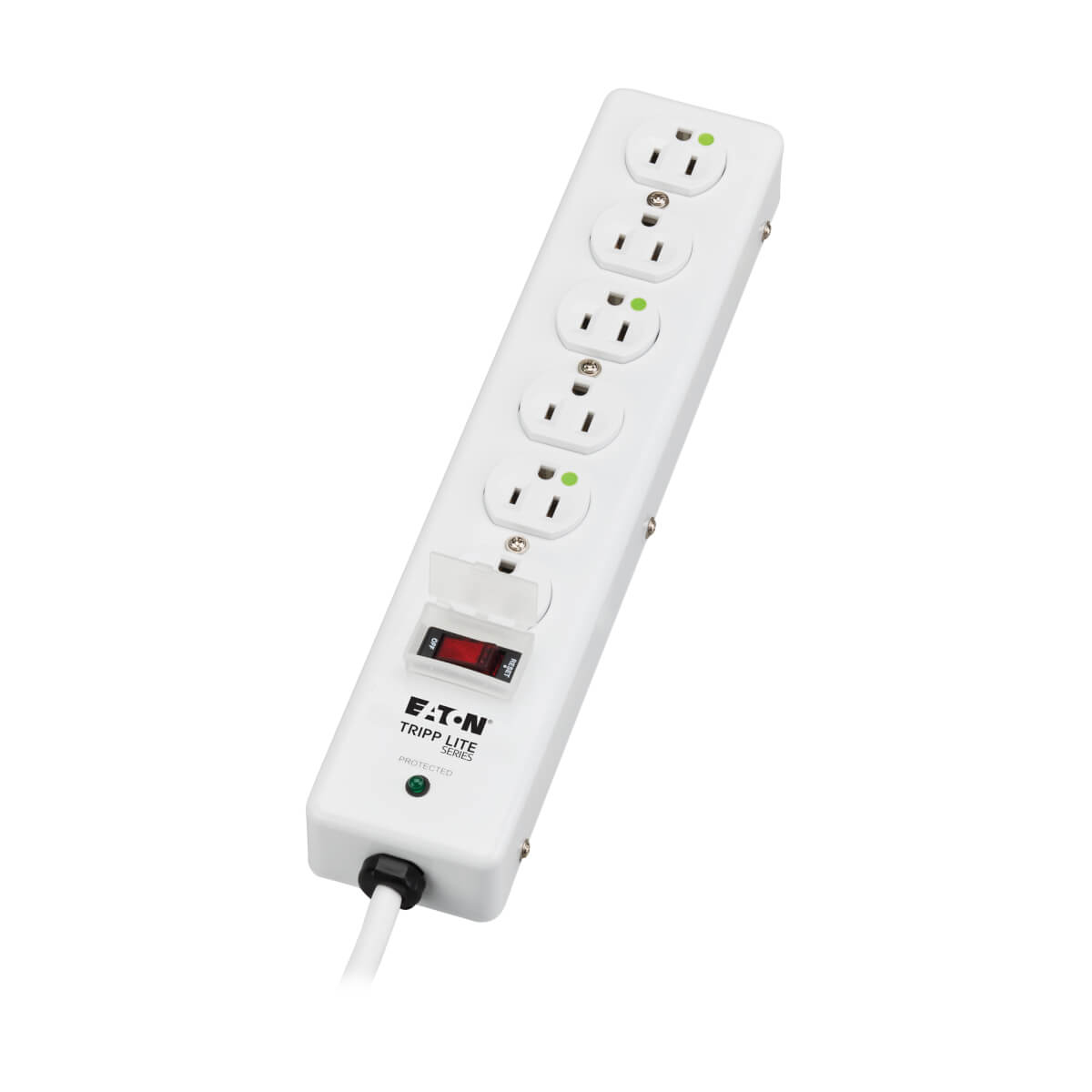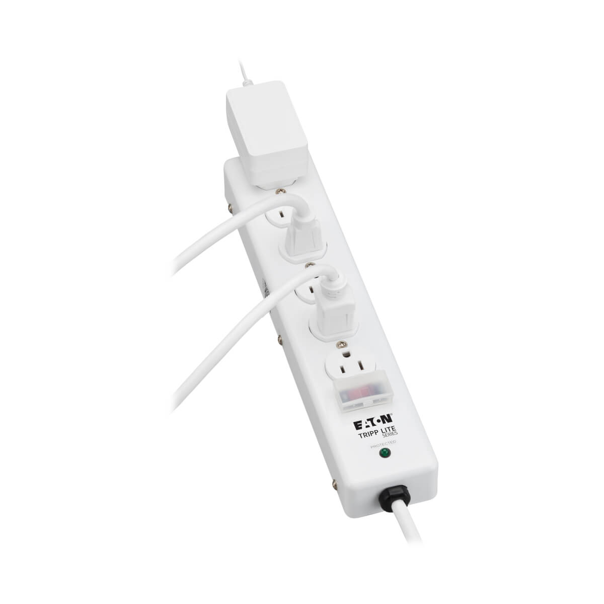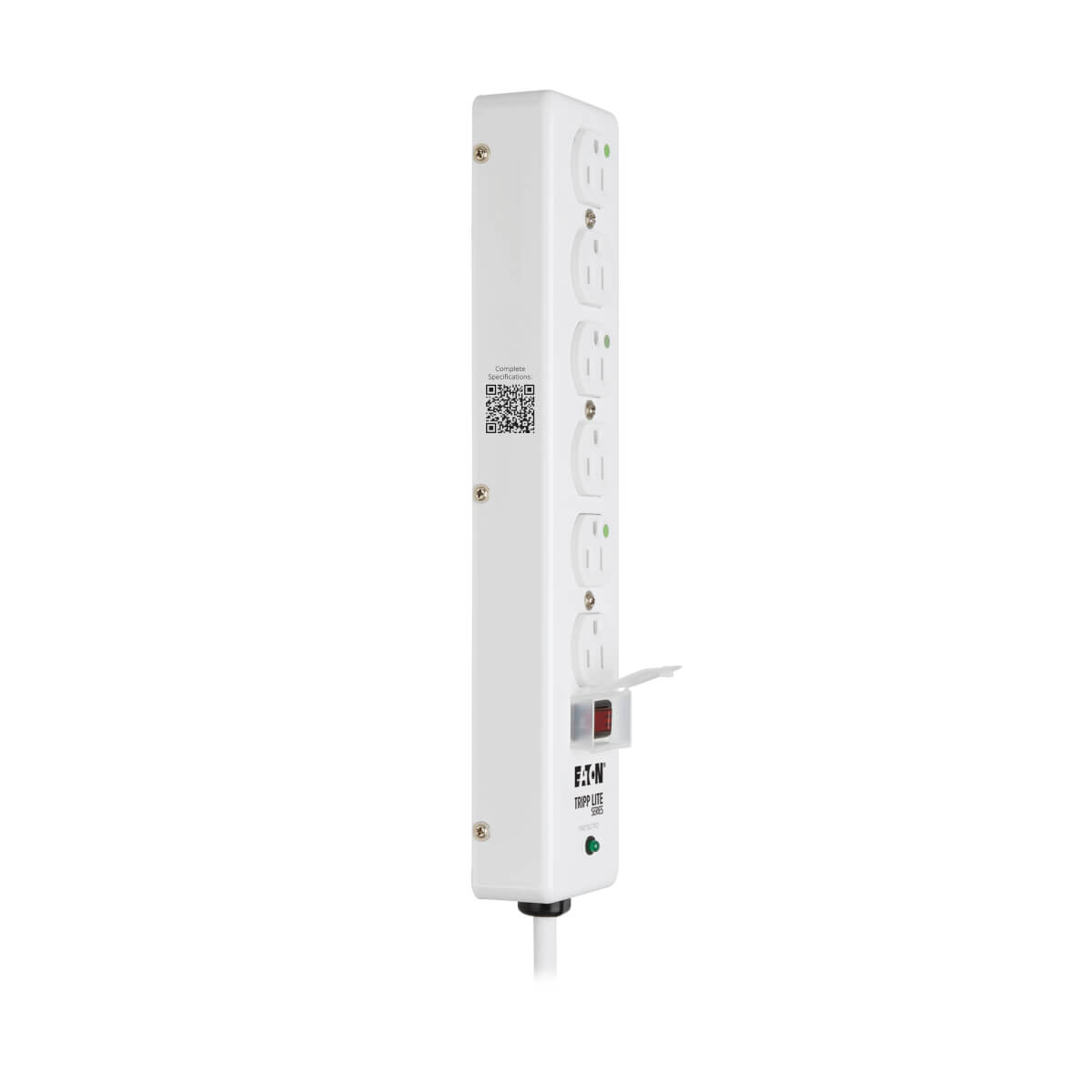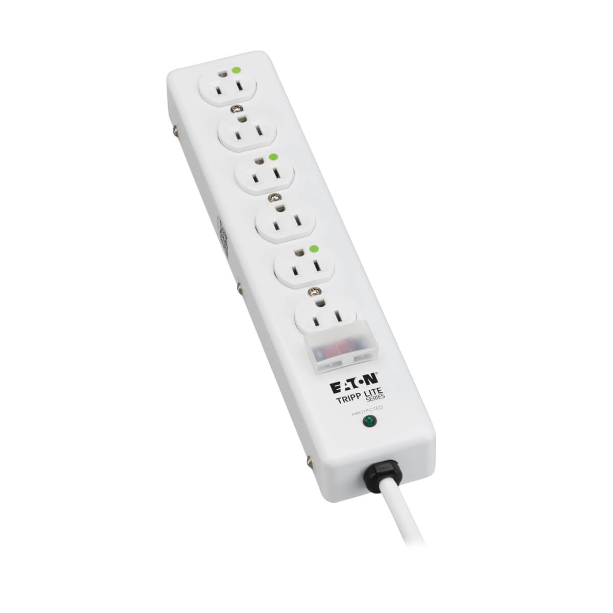 6-Outlet, 6-ft-Cord Surge Suppressor with Right-Angle Hospital-Grade Plug, White