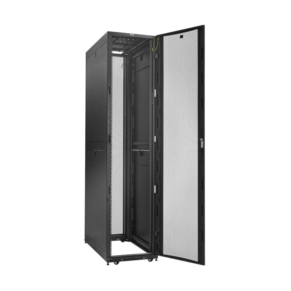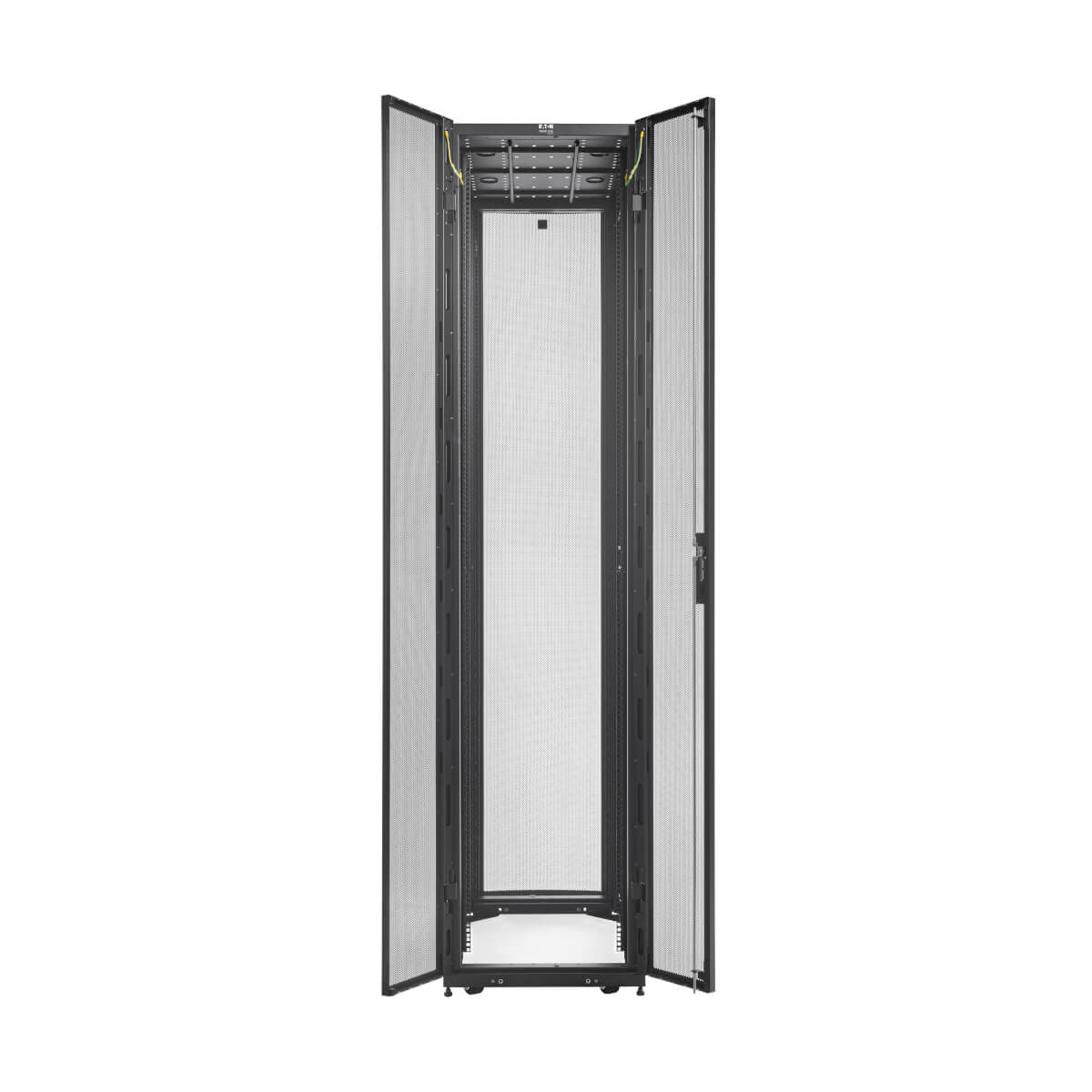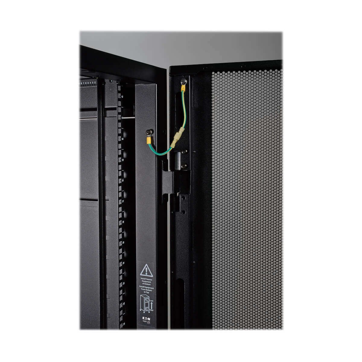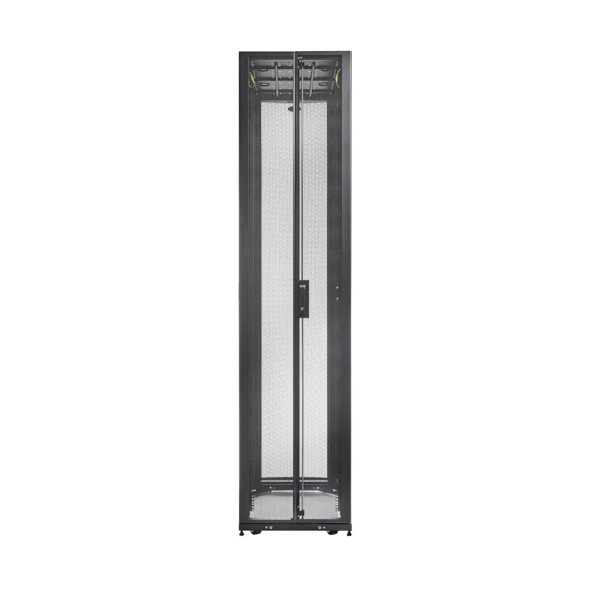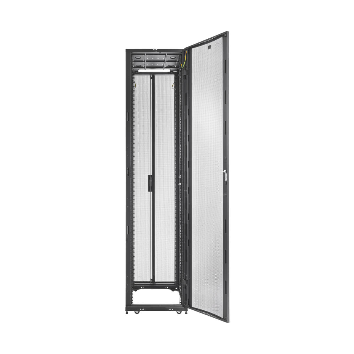 The reversible front door, split rear doors and half-size side panels lock securely to help prevent damage, tampering or theft. The doors, side panels and top panel are designed for quick release, making it easy to access connected equipment and cabling with little effort. Convenient top access ports and an open bottom allow easy cable routing through the cabinet. The vented doors allow generous airflow (more than 65% open space) from front to rear to keep your equipment cool and functioning at their peak.