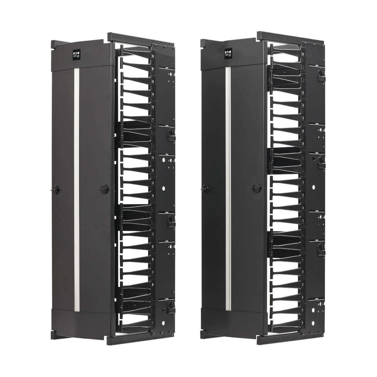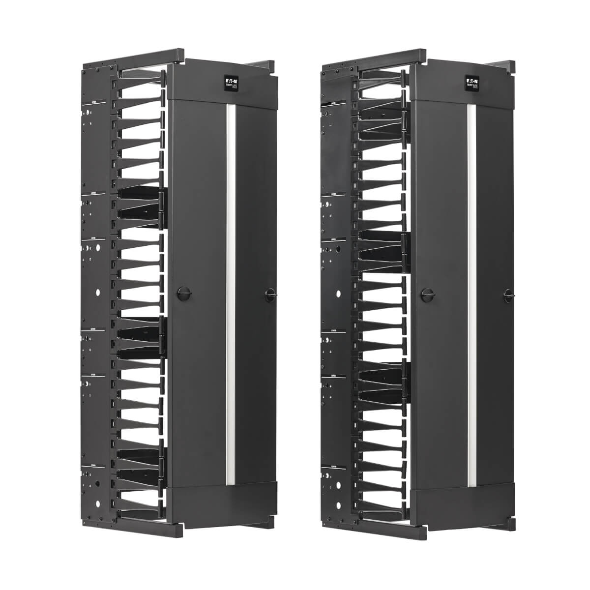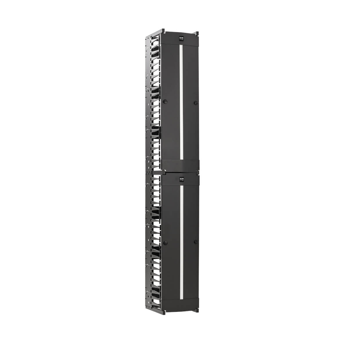 High-Capacity Vertical Cable Manager - Deep Double Finger Duct with Cover, Single Sided, 12 in. Wide, Black, 7 ft. (2.2 m)