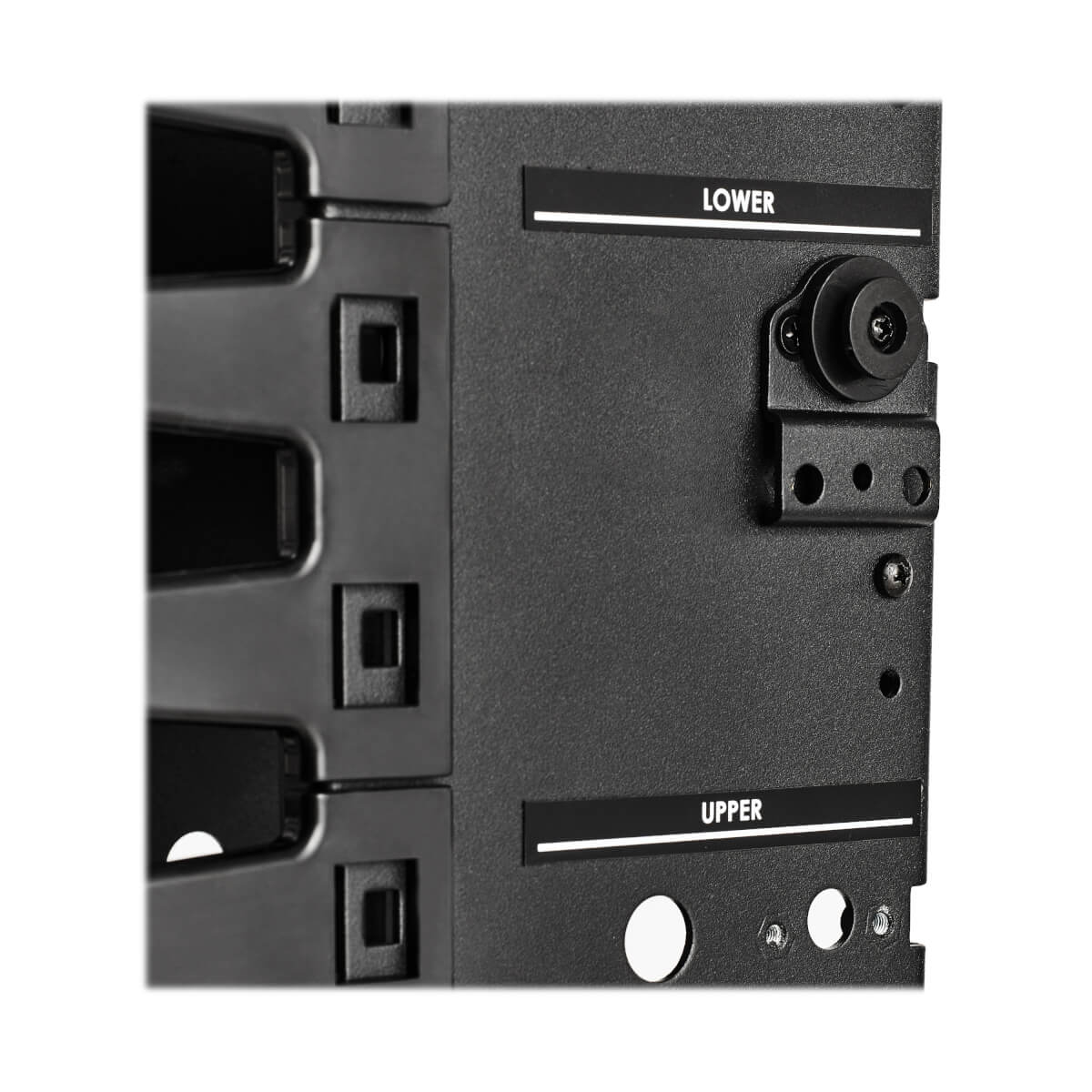 Easy to mount along the side of your open frame rack, the SmartRack® SRCABLEVRT12HD neatly organizes fiber optic, copper and coax cable bundles. This vertical manager maintains proper bend radius to eliminate stress on the cables connecting your network devices. Fingers on either side allow convenient access to cabling for routing and separation of bundles. The high-capacity 12-inch (30.5-centimeter) width and 11.4-inch (29-centimeter) depth allows the installation and routing of large cable bundles. The cable manager is made from cold-rolled steel with a black finish to match your rack.