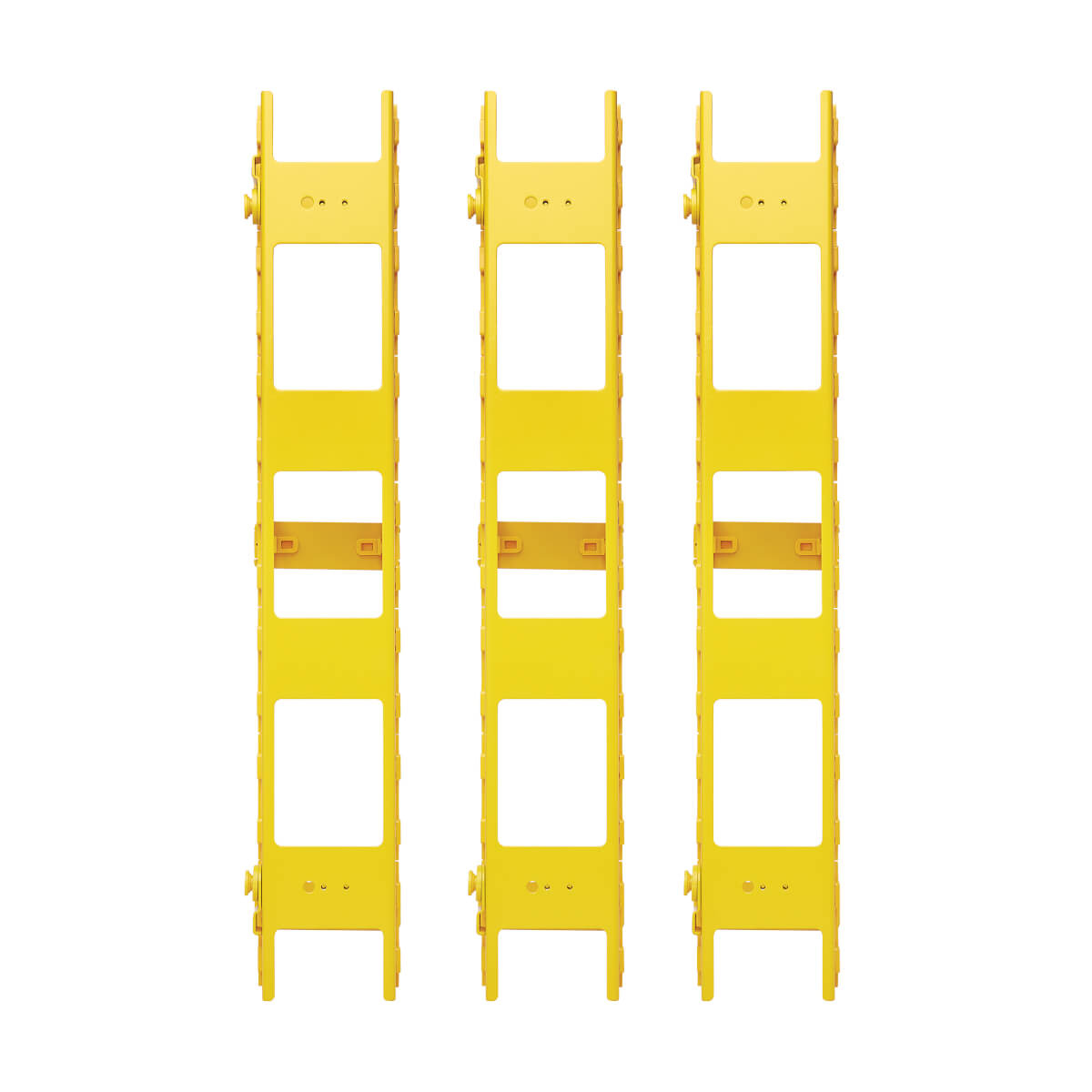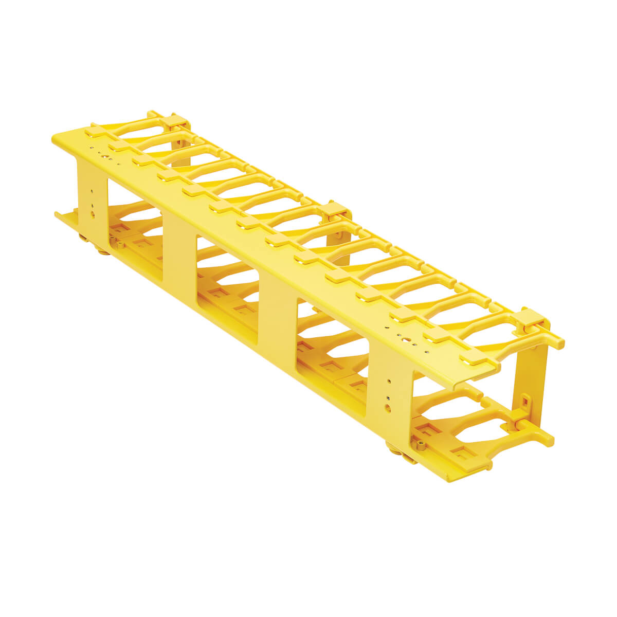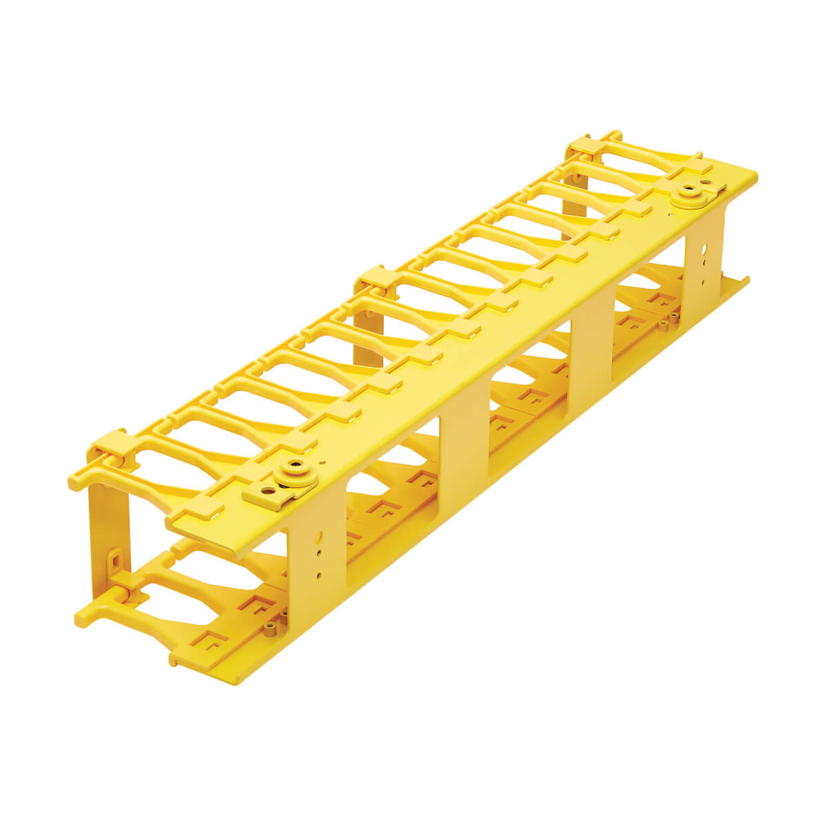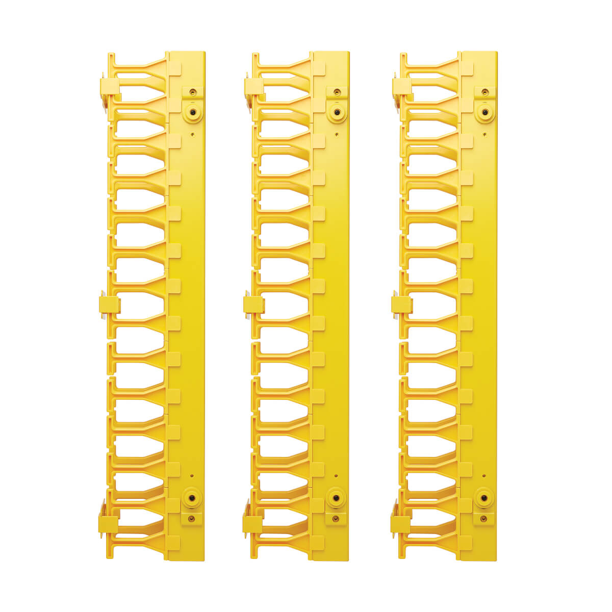 Easy to mount along the side of your rack cabinet or open frame rack, the SmartRack® SRCABLEVRT3FC neatly organizes fiber optic, copper and coax cable bundles. This vertical manager maintains proper bend radius to eliminate stress on the cables connecting your network devices. Fingers on either side allow convenient access to cabling for routing and separation of bundles. The high-capacity three-inch (7.6-centimeter) width allows the installation and routing of large fiber cable bundles. The cable manager is made from high-visibility yellow steel to help you identify its contents in a crowded rack.