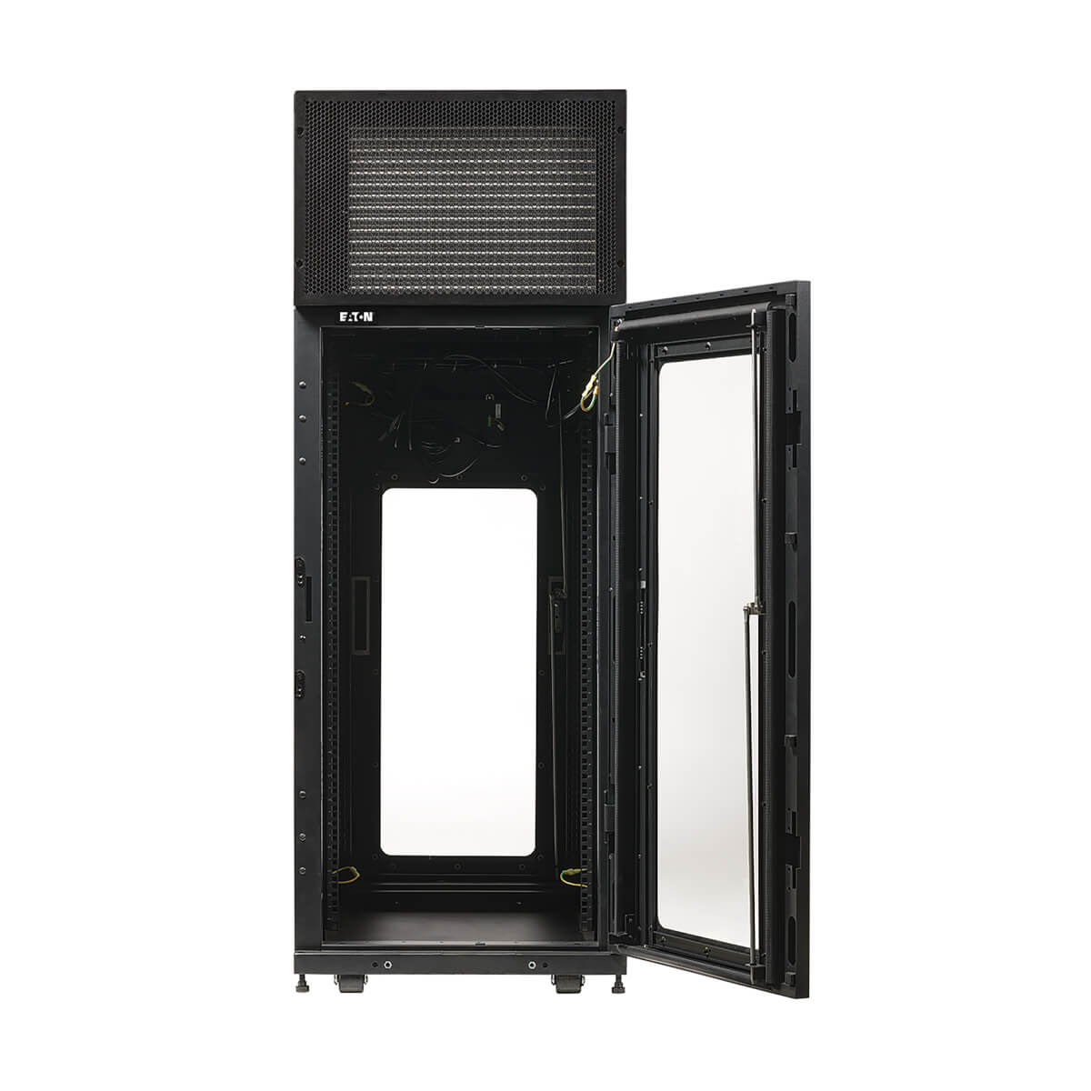 Built-in baying brackets allow the combination of two or more rack cabinets in a row. Center-to-center width can be set at 24 inches (600 millimeters) to match standard data center floor tiles.