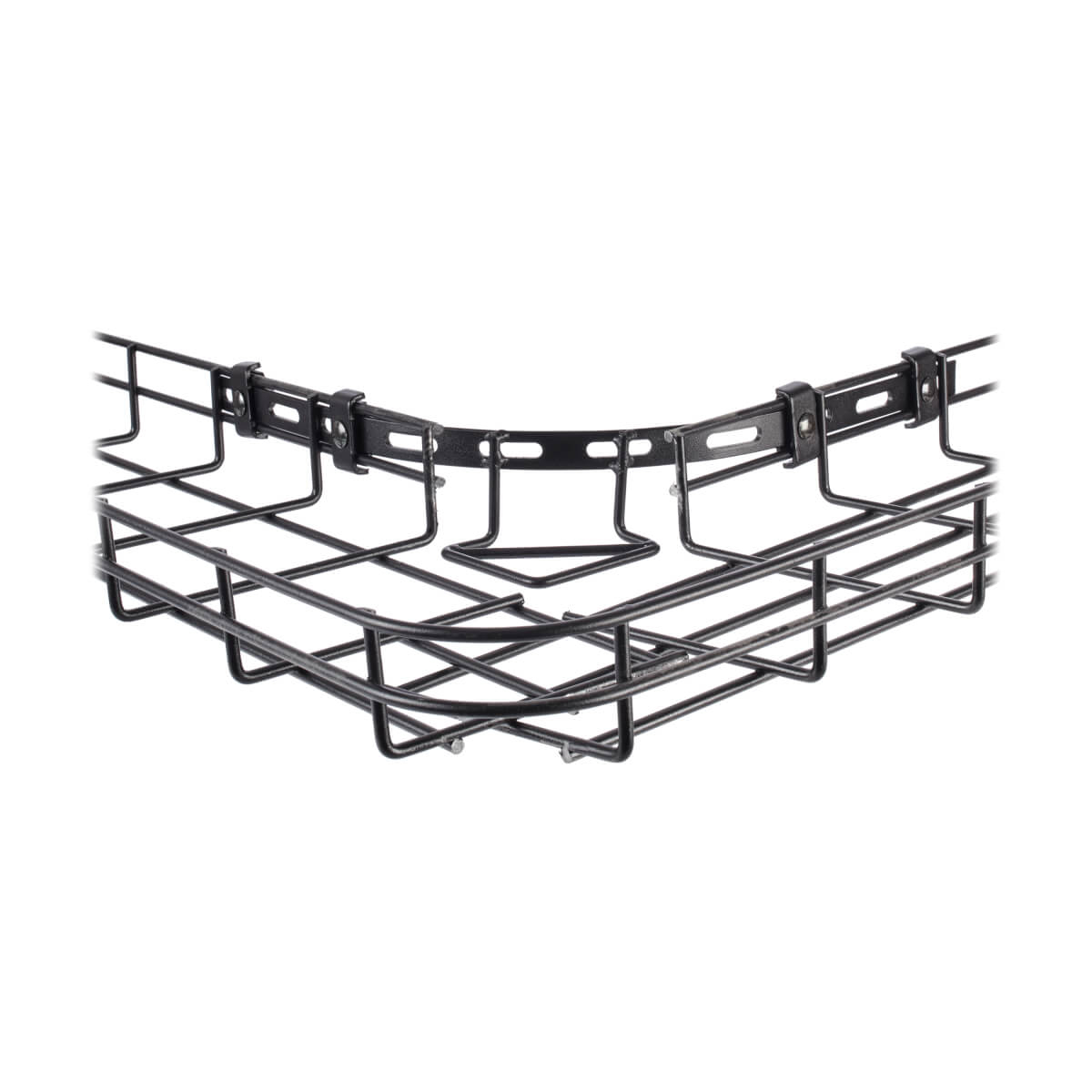 This SmartRack® arc buffer creates a secure connection point between two intersecting sections of wire mesh cable tray in your server room or data center. This allows you to create a radius for 90-degree intersections and shape the direction of cabling to your liking. The black powder-coated metal plate adds a radius that further strengthens and supports the bundled cables, allowing for more voluminous and comprehensive runs. Four couplers are included for quick installation. The SRWBARCBFFL is designed for wire mesh cable trays 2 inches in height, such as SRWB6210STR and SRWB12210STR.