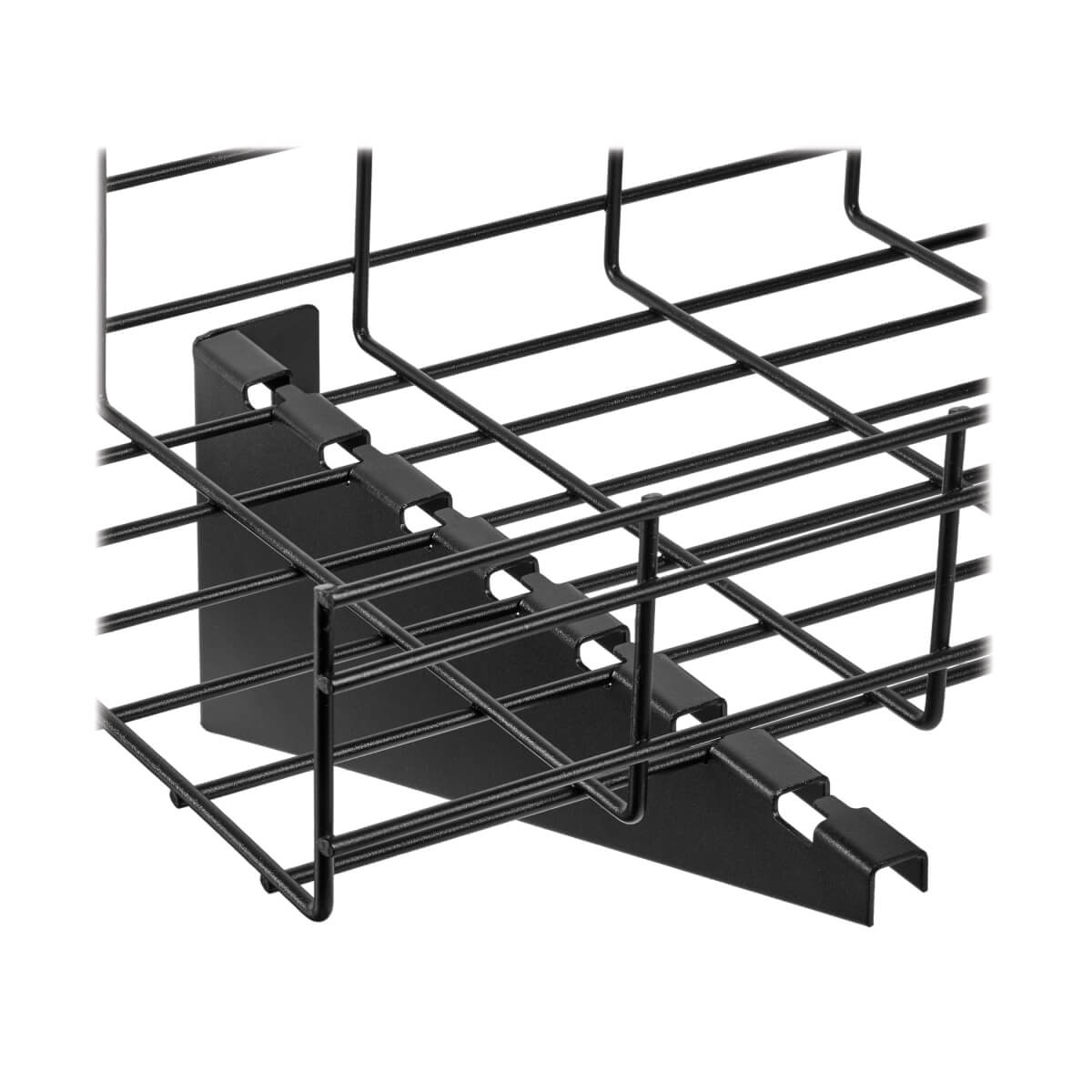 The SmartRack® SRWBWALLBRKTHD is a black powder-coated metal bracket, measuring 15 inches in length, for easy installation with your wire mesh cable tray. This wedge-shaped bracket allows you to mount sections of cable tray along the wall of your data center, network closet or industrial space to complete your cable management application. It mounts to the wall with user-supplied hardware and then easily snaps into the wire mesh. It fits cable tray sections measuring 150, 300 or 450 millimeters in width, such as SRWB6210STR, SRWB6410STR, SRWB12210STR, SRWB12410STR or SRWB18410STR. For best practice, tray support is recommended approximately every five feet.
