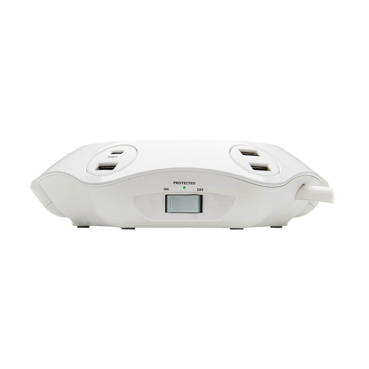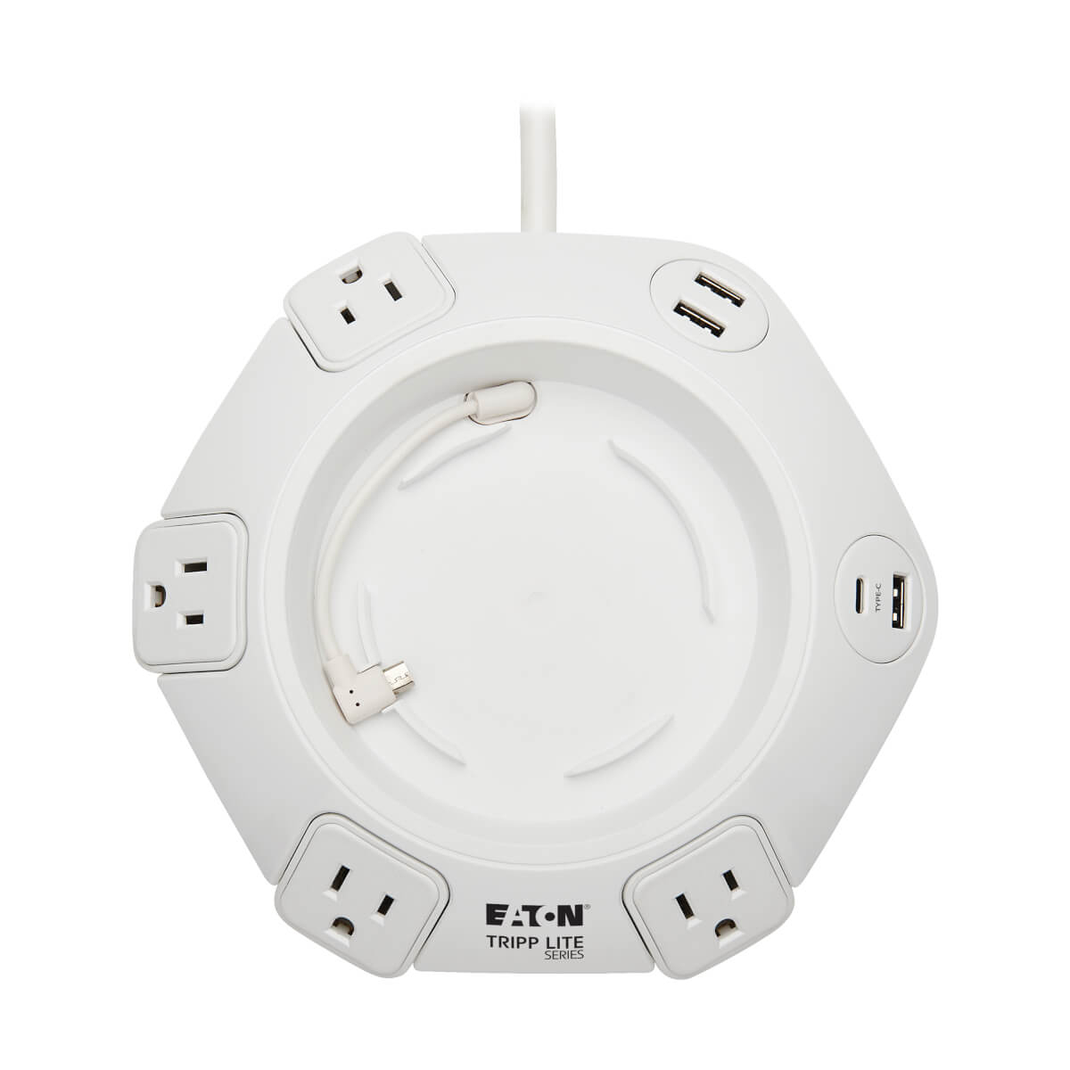 Tripp Lite TLP48USBCUFO. Surge energy rating: 1080 J, AC outlets quantity: 4 AC outlet(s), AC outlet types: NEMA 5–15R. Power plug: NEMA 5–15P. Product color: White, Material: Plastic, Country of origin: China. Cable length: 96.1" (2.44 m), Weight: 30 oz (850 g), Width: 7.06" (179.3 mm). Package width: 8.07" (205 mm), Package depth: 3.75" (95.2 mm), Package height: 8.27" (210.1 mm)