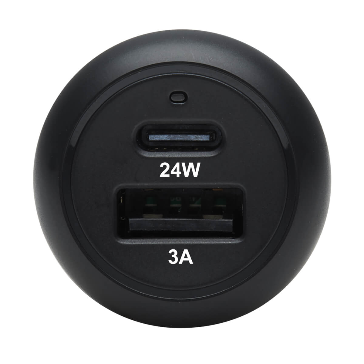 Dual-Port USB Car Charger with 24W Charging - USB-C (24W) PD 3.0, USB-A (24W) QC |
