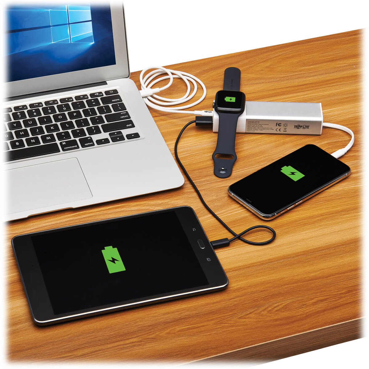 No more frantic searching for an outlet when your mobile device’s battery power is getting low. Small and lightweight, this high-capacity power bank dishes out 5200mAh of battery capacity for charging up to three mobile devices, including smartphones, tablets, e-readers, handheld gaming devices and an Apple Watch. Lithium-ion lasts longer than lead-acid batteries and saves you money in the end. The UPB-05K2-APL is compatible with Apple, Android and Windows devices.