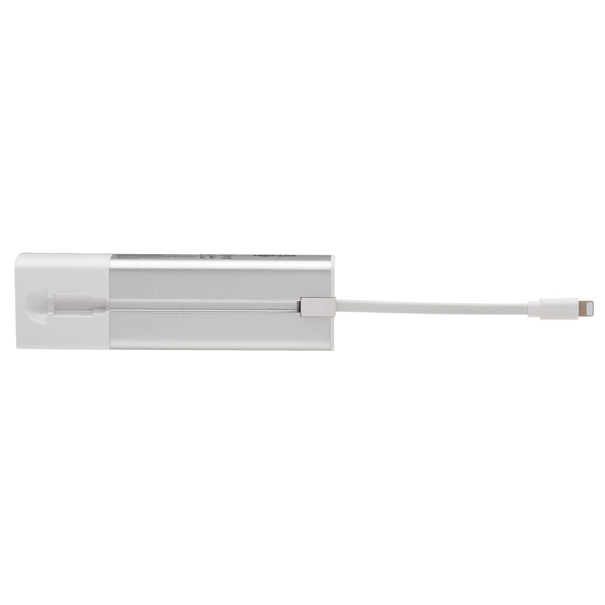 A lithium-ion battery with 5200mAh of capacity provides charging at maximum power draw for hours, making your devices ready when you need them. Status LEDs let you know how much battery capacity is left. When it’s time to charge the internal battery, connect a Lightning cable (sold separately) to connect the power bank’s Lightning port to a computer or wall charger.
