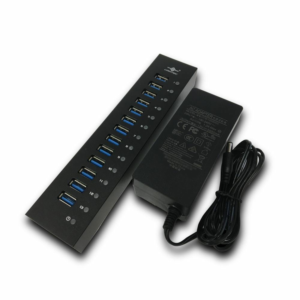 13-Port USB 3.0 Aluminum Hub (All Data/Charging BC 1.2), 12V/5A Premium Power Adapter